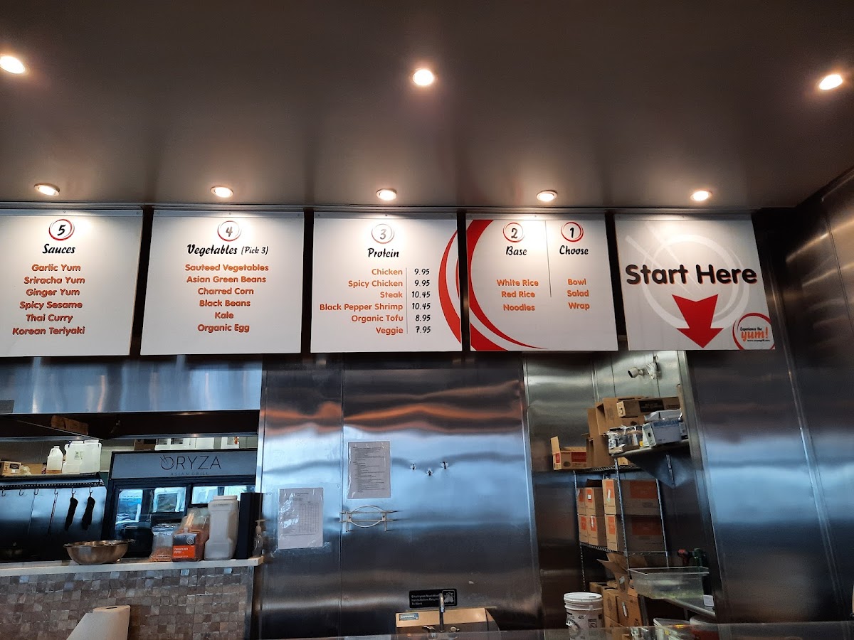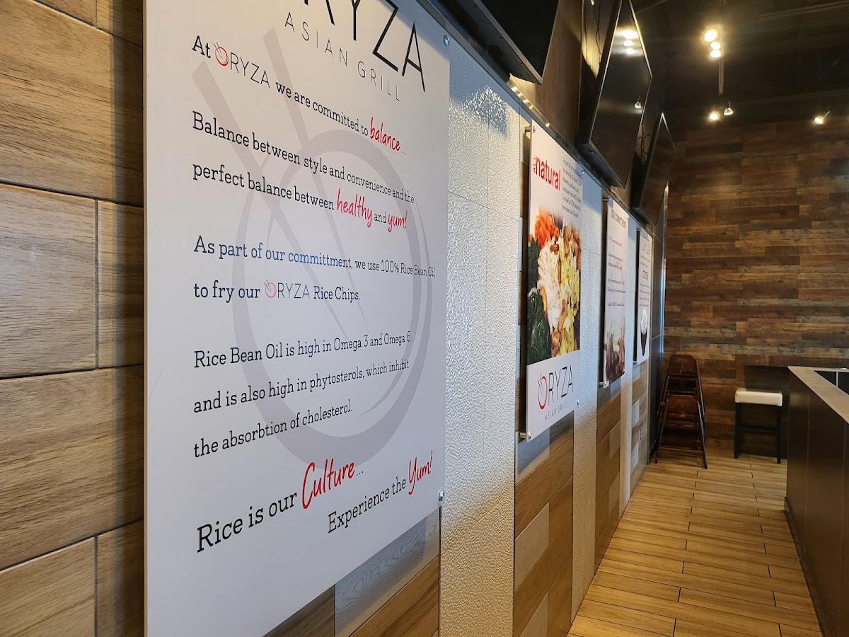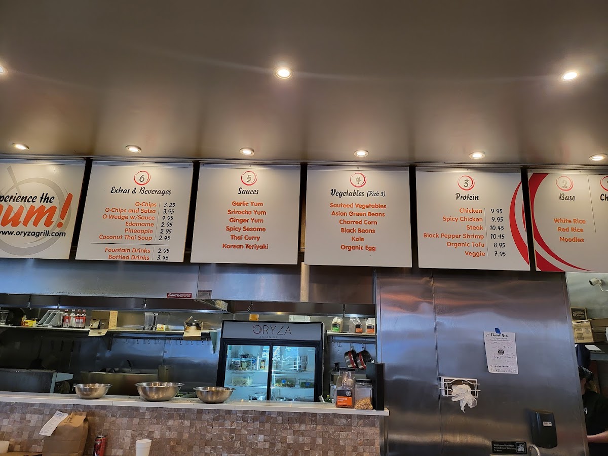 The menu at Oryza Asian Grill offers a variety of flavorful and satisfying options that cater to different tastes and preferences. For main dishes, you can choose from the Bowl, Wrap, and SaladO-Wedge. Each option provides a balanced mix of fresh ingredients and bold Asian-inspired flavors. For a lighter snack, there are choices like Chips & Salsa. The Kid's Menu features kid-friendly versions of the main dishes, with Kid's Bowl, Kid's Wrap, and Kid's Cheese Wedge. To complement your meal, you can add extras such as Asian Sesame Guac, Edamame, and PineappleSide Tortilla, or a Side of Sauce to elevate the flavors. For beverages, the selection includes refreshing drinks like Soda, Fiji Water, and Juice Box, ensuring there is something for everyone to enjoy. Whether you're in the mood for a hearty bowl or a simple snack, Oryza Asian Grill provides a delightful dining experience with a range of delicious and affordable options.